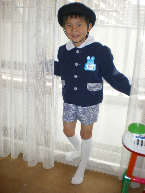 年中さんになると制服を着て登園するようになるから、朝、着替えの練習をしてみた。