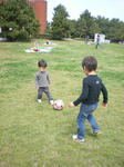 そしてパパが後から来て、公園でしばらくボール遊びやフリスビー、戦いごっこをして遊んだ。