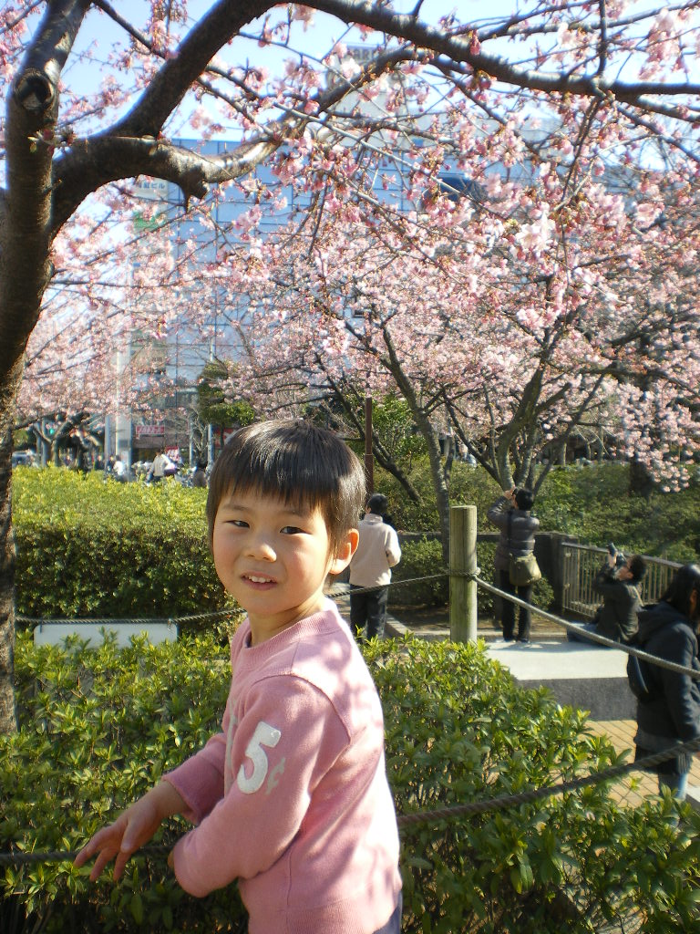 次はパパを駅までお迎えがてら、河津桜を見に。