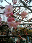 図書館の帰り、近所の早咲きの河津桜が少しだけ咲いていたので見に行った。