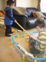 しかもゆうたくん、物心ついてからはうちに遊びに来たことなかったのに、リビングに入るとすぐにトミカ2台を握り締め、笑顔でプラレールで遊びだした(笑)