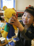 朝からぬいぐるみのしまじろうを可愛がるだいち。