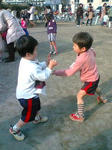 いつもの公園で遊んでいたお友達もほとんどお休みで、今日は戦いごっこのボス的存在の子と一騎打ちだった。