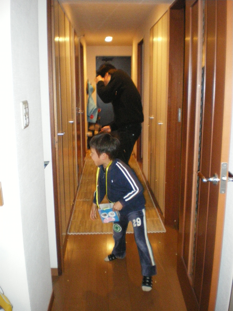 マンションに着いたら、家まで階段で行きたいと言い、パパと元気に階段で上がってきた。
