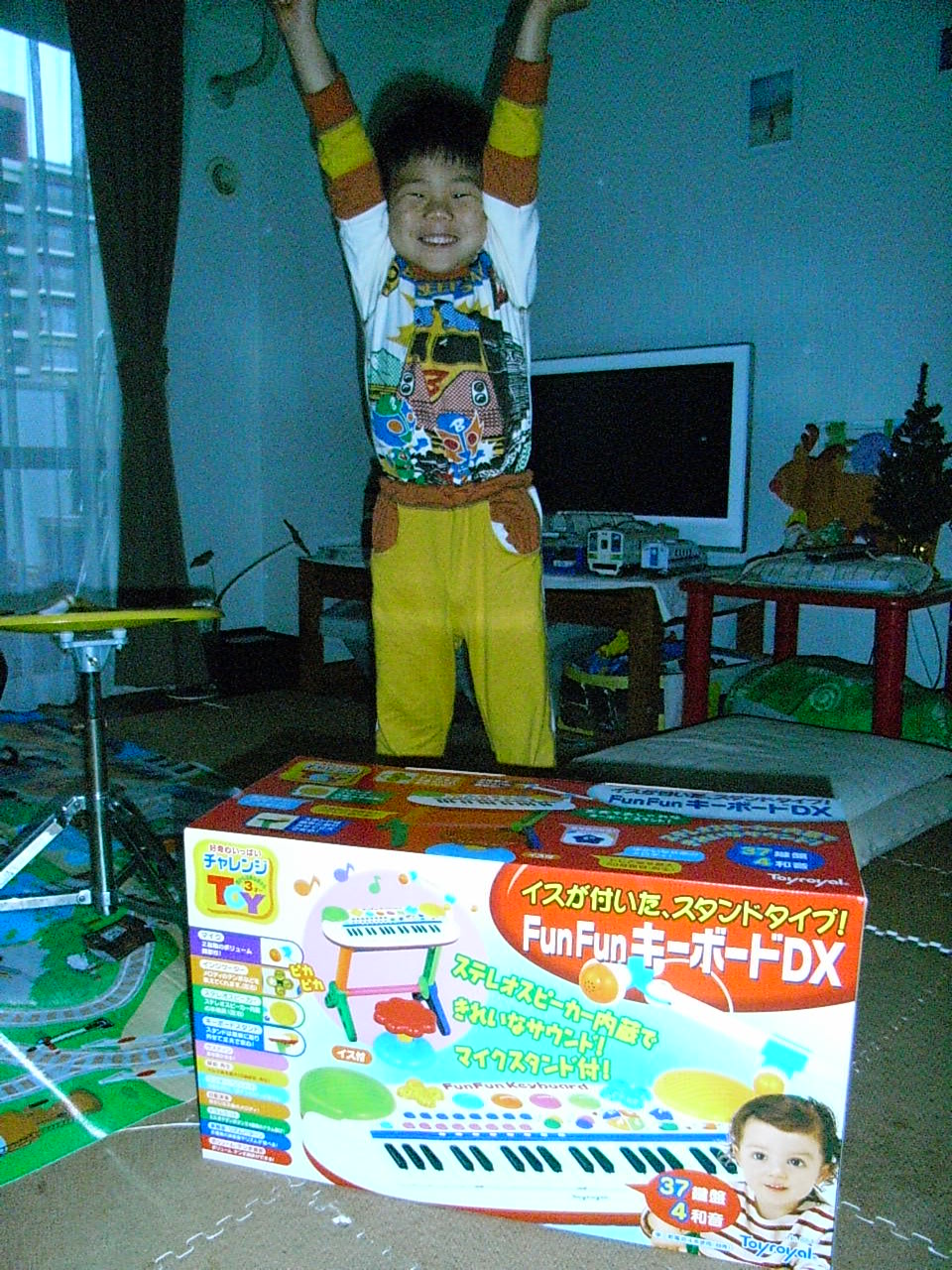 本当は楽器屋さんで売っていたキーボードが欲しかったみたいだけど、私の判断でイスやマイクの付いているものにした。