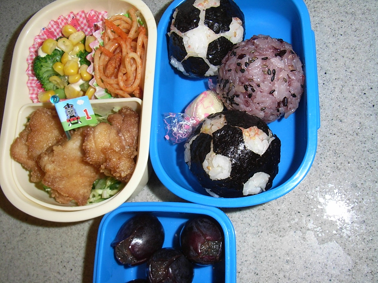遠足のお弁当は、リクエストに応えてから揚げとぶどうを入れた。