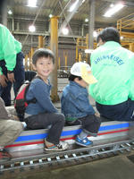 基地の中ではいろいろな展示物があって、踏み切りや信号などがボタンを押して動かせるようになっていたり、ドアの開閉をさせてもらえたり、ミニ電車に乗ったりと電車好きにはたまらないイベントだった。