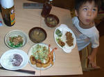めいっぱい遊んでくたくたになったパパとだいちのために急いで晩御飯を用意。