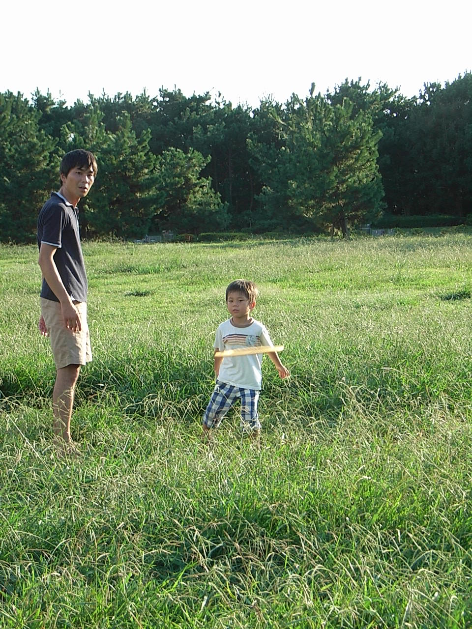パパがフリスビーの飛ばし方を教えてあげていて、私が到着した頃にはだいぶ上手に飛ばせるようになっていた。