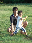 急いで海浜公園に行ってみたら、仲良く草っぱらを走り回る親子を発見^^