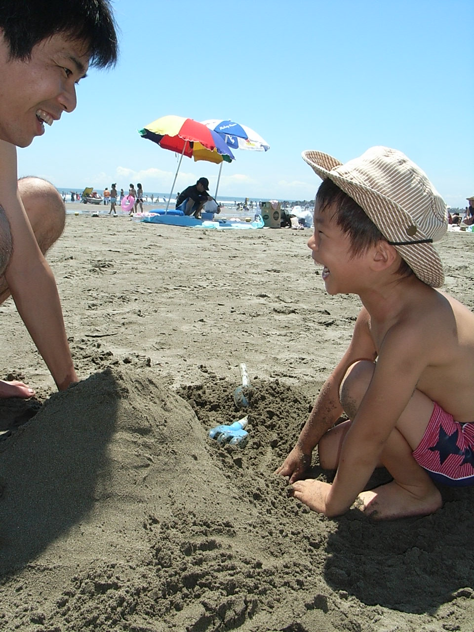 パパはだいちとたくさん遊びたかったみたいで、到着するとすぐに砂の山を作り、トンネルを2人で作成。