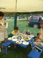 予報どおり、到着して急いでテントの準備などをしていると小雨が降ってきた。