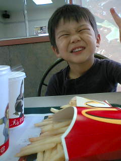 「だいち、おっきいハンバーガー食べる!」って張り切ってたわりに、おもちゃ付きのセットを頼んでみたらハンバーガーもポテトもジュースも半分しか食べず、残してしまった。