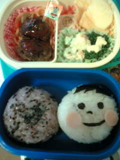今日は黒米のおにぎり&だいちの顔のふりかけおにぎり。