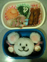 あまりかわりばえのしないお弁当だけど、今日はくまさんのおにぎりにした。