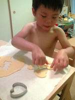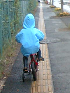 小雨が降っていたけど、自転車に乗りたいというからレインコート&長靴で出かけた。