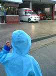 行く途中にある消防署で、救急車の出動場面に遭遇。