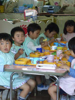 親は教室には入らず、廊下から窓越しに見ていなくてはいけないから「だいちー!もう少し食べなさぁ~い!」って檄を飛ばしたいところだけど、ぐっと我慢我慢。