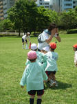 年少さんだけじゃなく全学年が参加の遠足だったから、広~い芝生の広場に園児がたっくさん。
