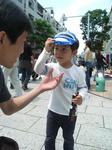 頬に絵を書いてくれる出店の前で立ち止まっただいち。