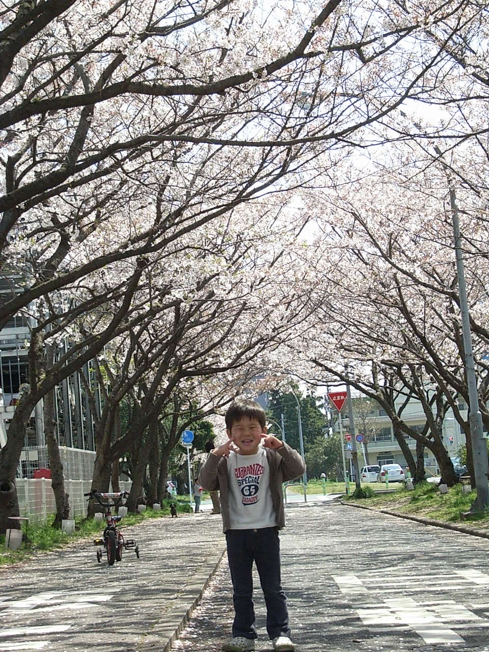 昨日車からちらっと見えた近所の桜がとってもきれいだったから、午前中からだいちの自転車で外へ。