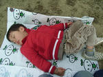 到着しても起きず、外の広場で持っていた敷物の上に寝かせてみた。
