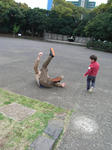 パパとかくれんぼしたり、みんなで芝生で側転しあったり相撲ごっこしたり。