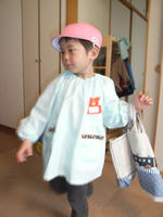 幼稚園のスモックを着て見せて♪とリクエストしたらバッグと上履き入れも持ち、帽子をかぶり、バッグが気に入ってるみたいでいろんなおもちゃを詰め込んで遊んでいた。