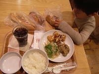 だいちはソーセージのパンやご飯、からあげ、切干大根のサラダを少し食べた。