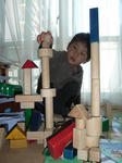 なにかと思ったら珍しく積み木をして遊んでいた。