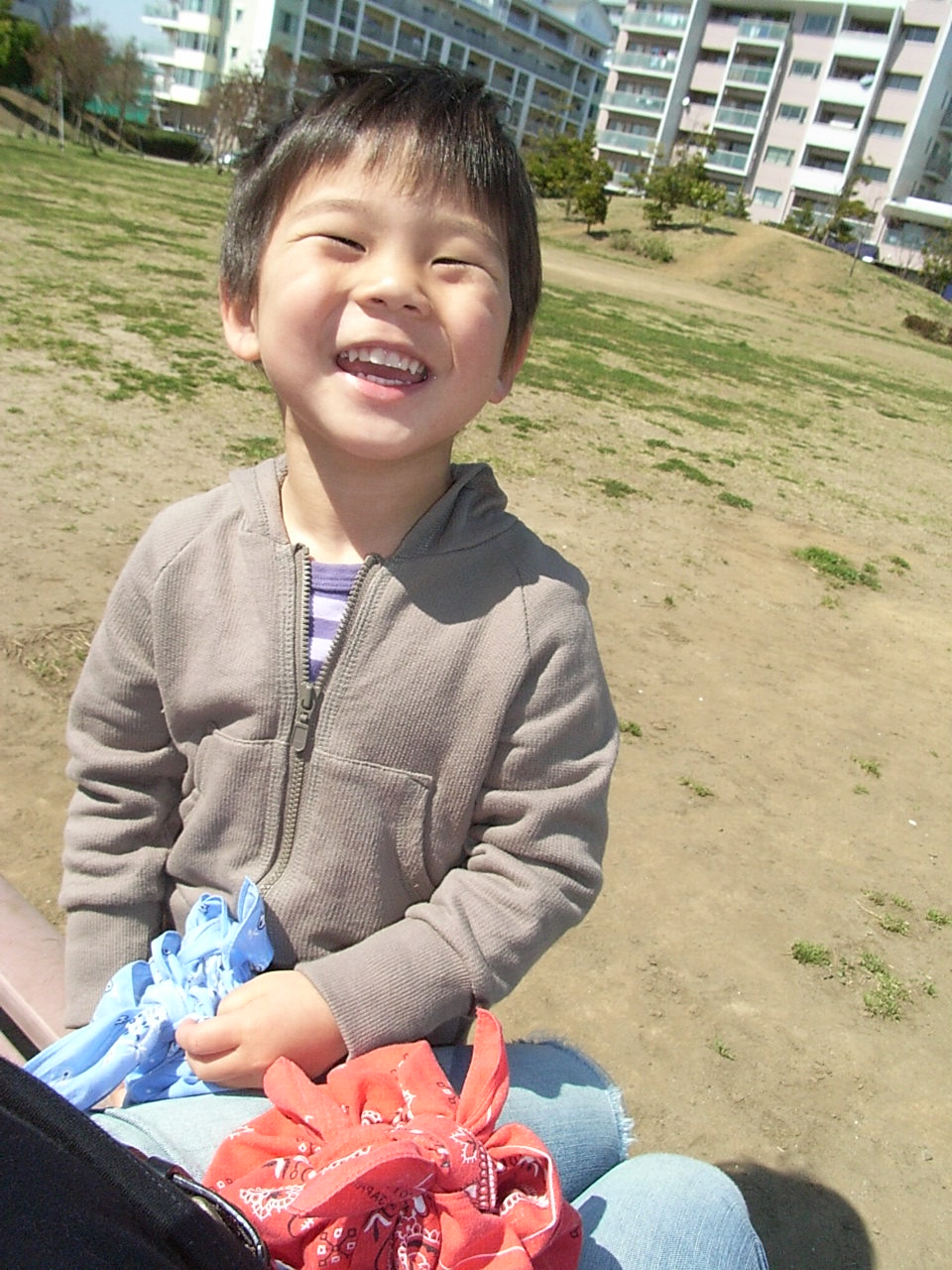 公園に着くと、遊ぶより先に「おにぎり食べよう!」だって。