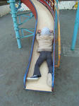 大きな滑り台で遊ぶ小学生の女の子がいて、その遊び方を真似して遊んでみたら面白かった!