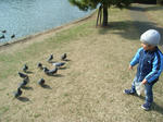 だいちはどんどん接近してくるハトにへっぴり腰(笑)