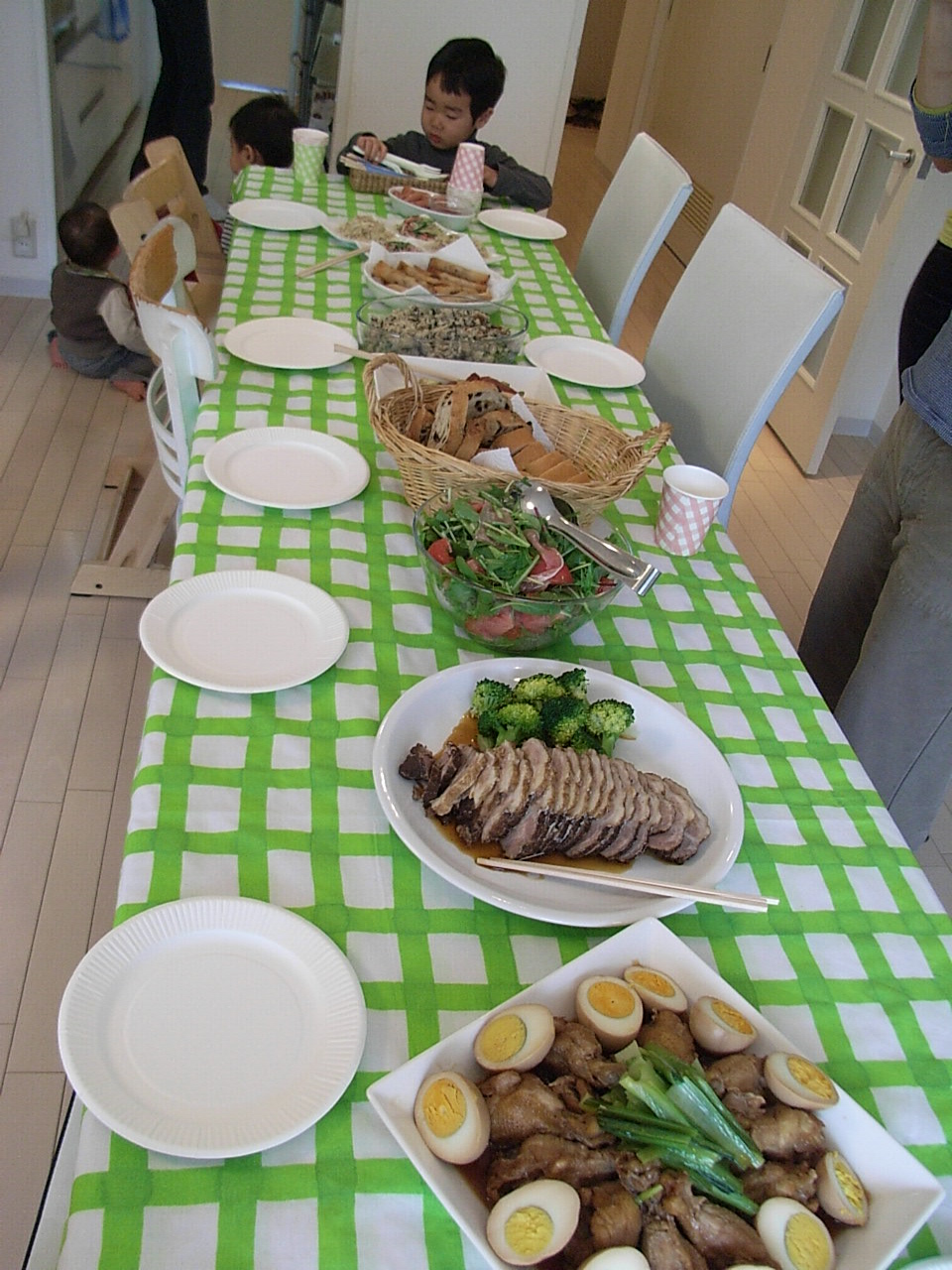 子ども達はなんだかんだ言いながらも、ちゃんとテーブルを囲んで座って各自ちゃんと食べてた。