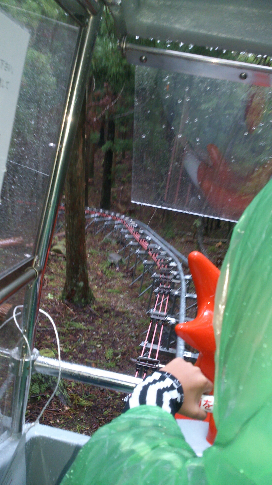 でも小雨が降っているから途中で止まる可能性がある、少し前に落雷でポイントポイントに設置してあったカメラが故障して見れない、何かあったときはトランシーバーで連絡してもらえれば救出に行ける、というちょっとリスクがありますよ。という説明で(^_^;)
