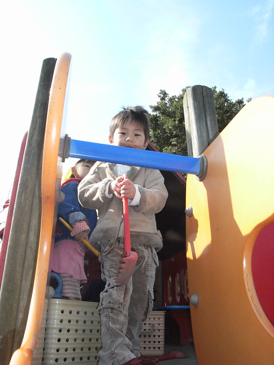 早めに着いたからいつものお友達はまだ来てなくて、私と2人で園庭に乗り込んだ。