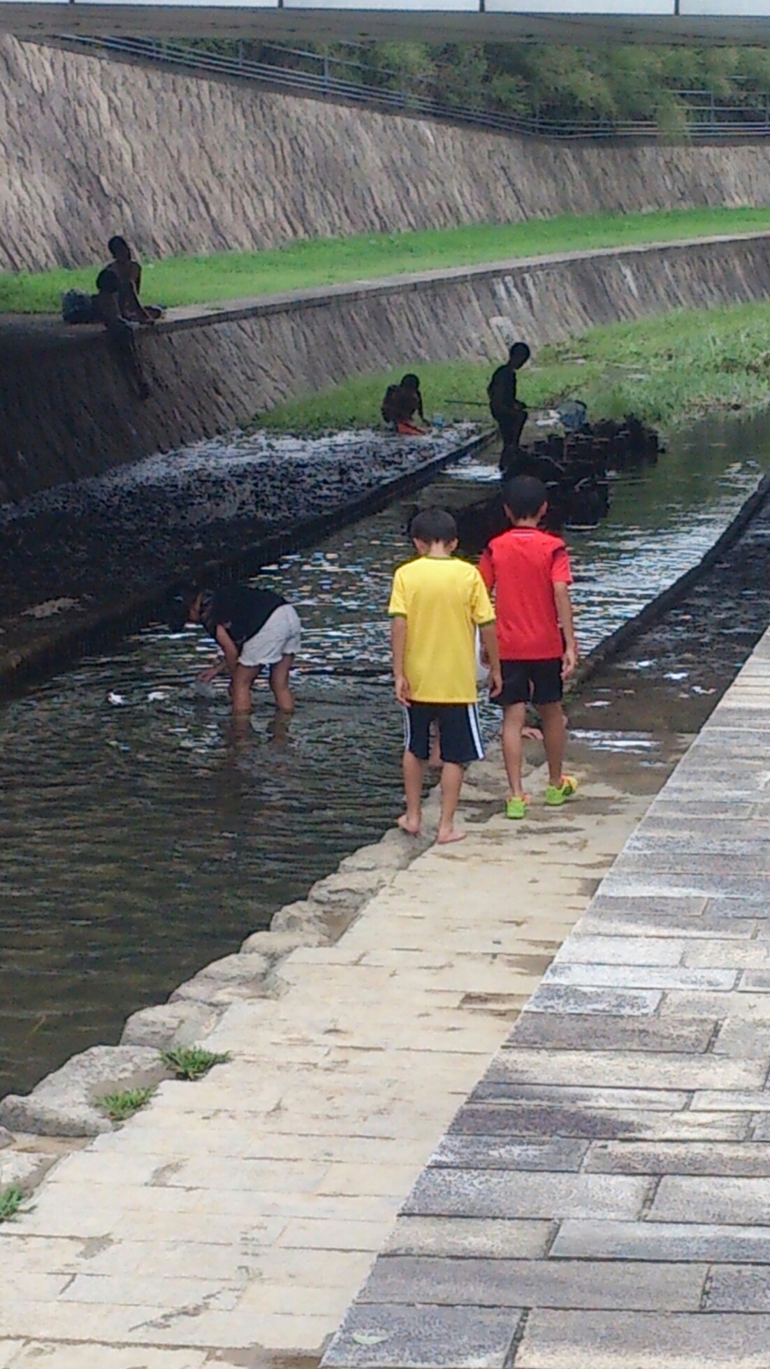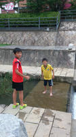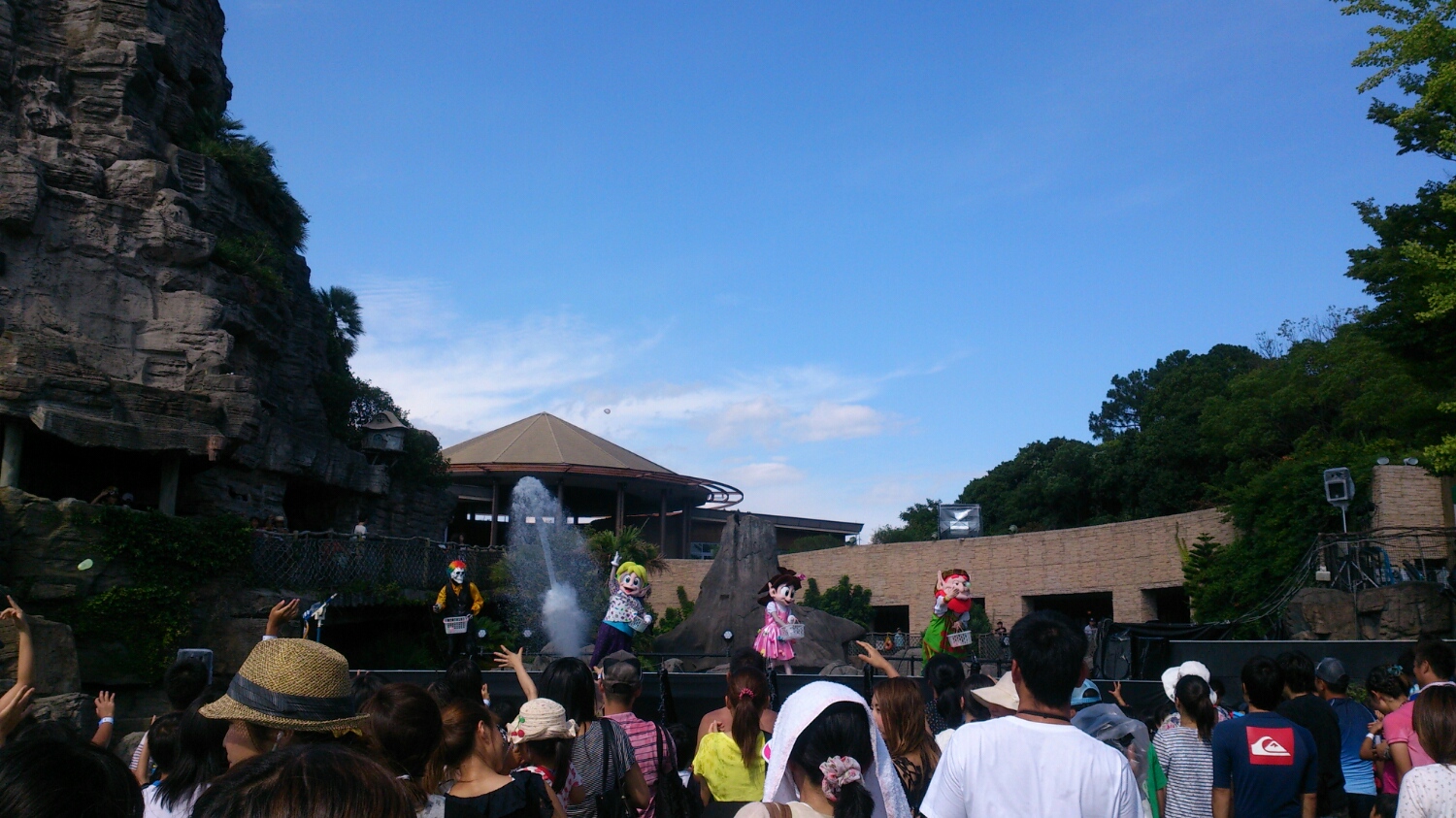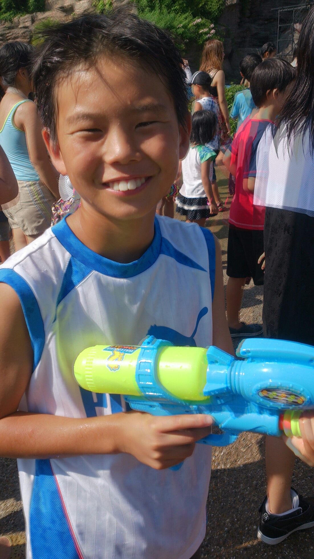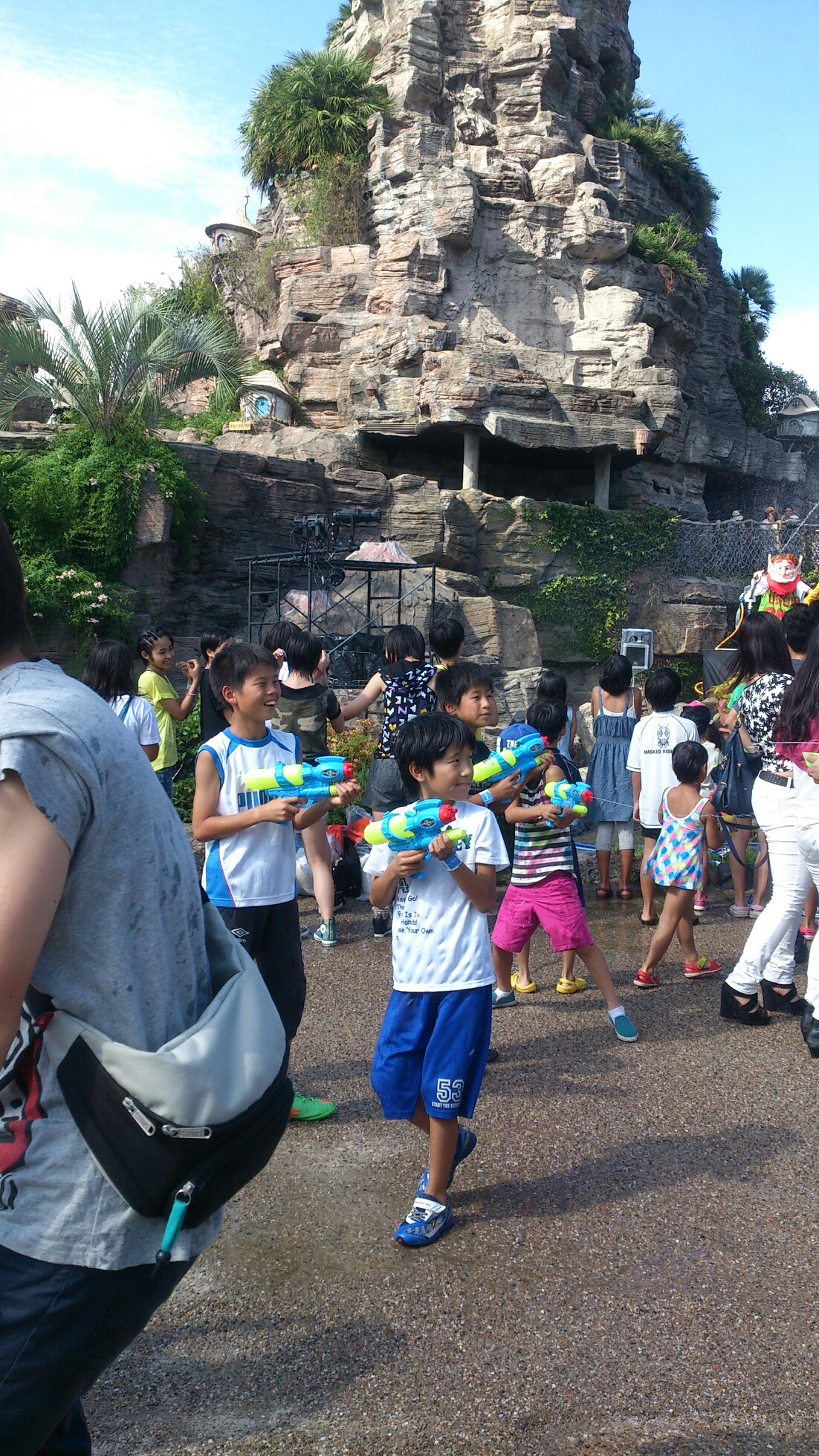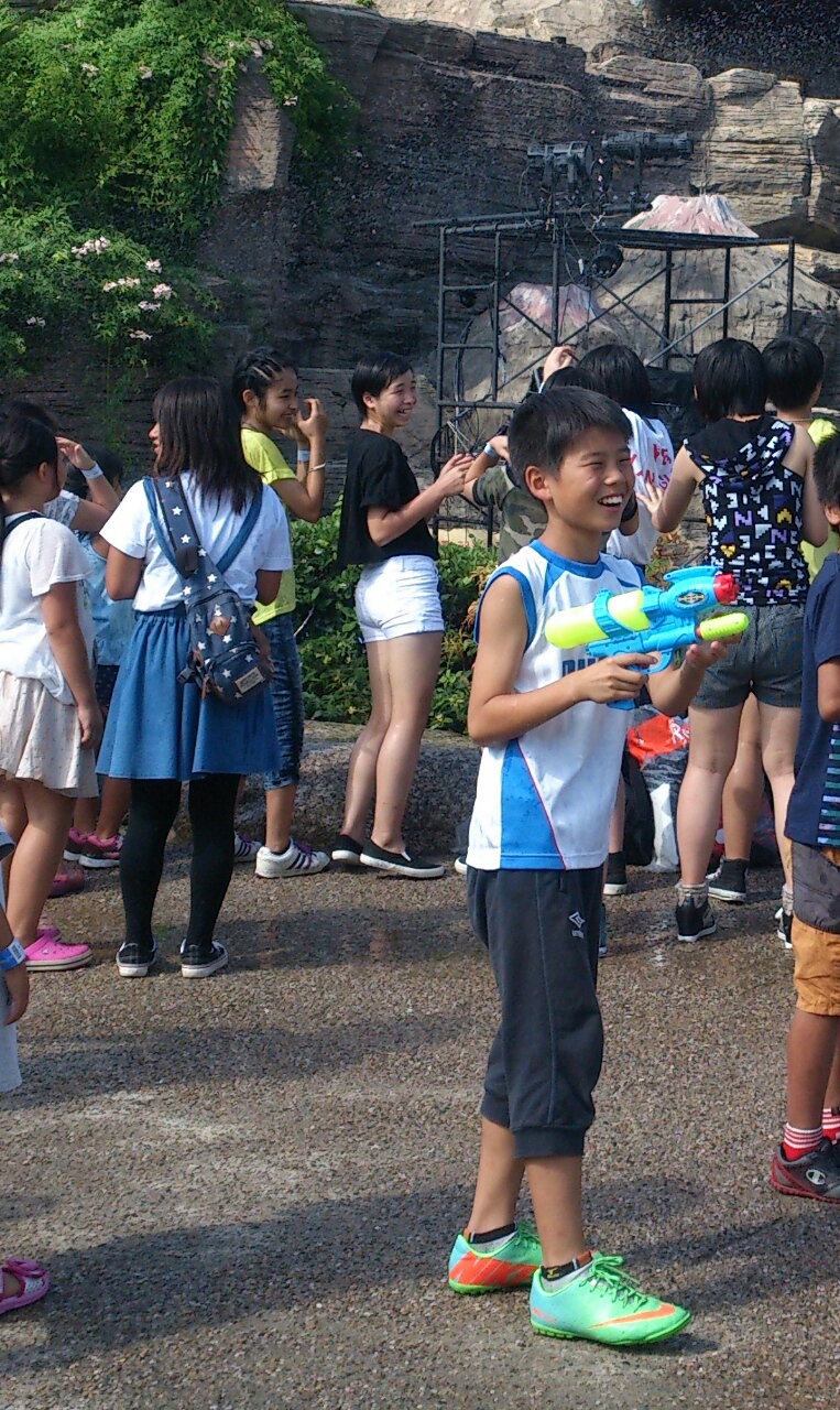 ちょうどお盆期間限定で水遊びのイベントがあって、水風船が飛んできたり、水鉄砲で的あてをしたり、スタッフのお兄ちゃん達が水をかけまくったりしてびしょぬれ(笑)