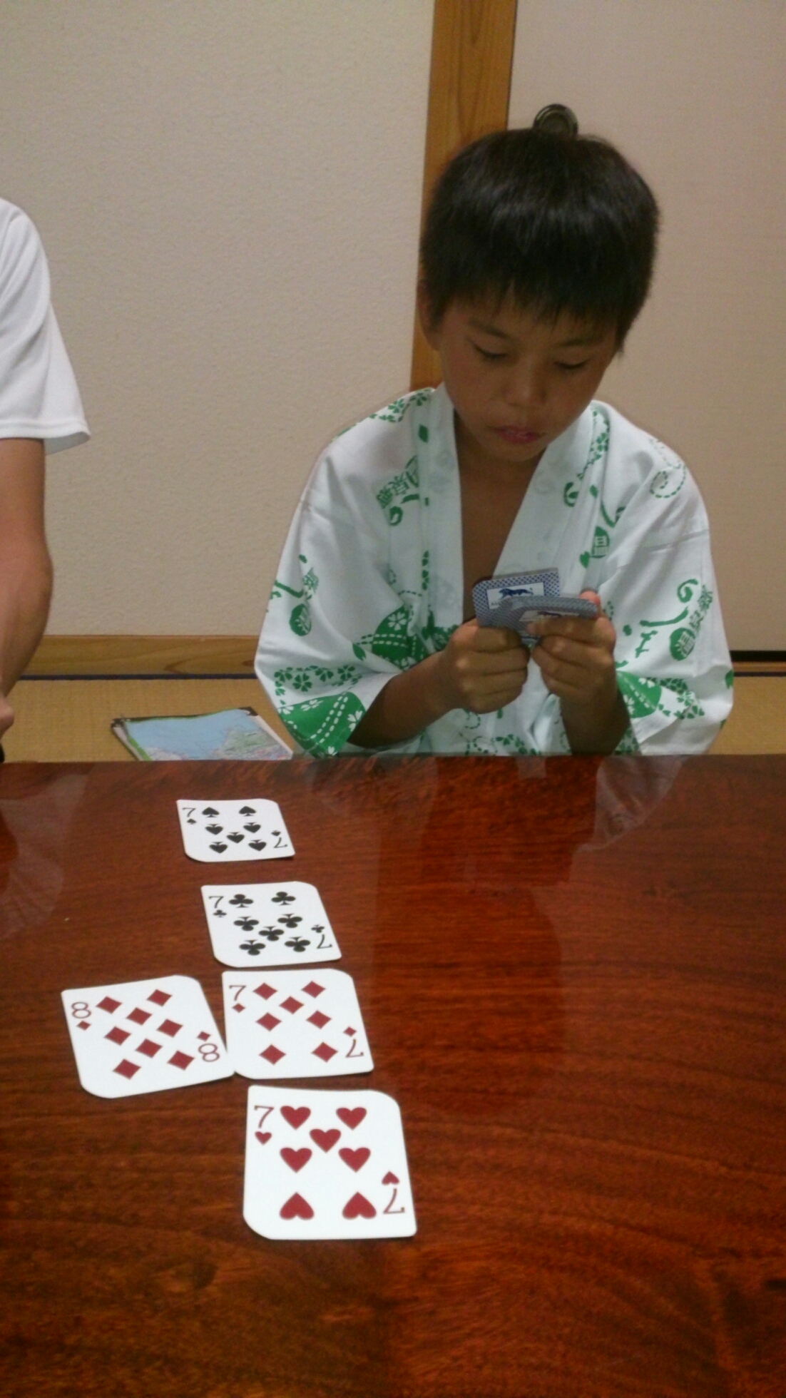 夜はトランプの7並べにハマり、何度も遊んだ。