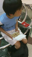 100円たこ焼きを手に、とことこやってくるだいちと待ち合わせ。