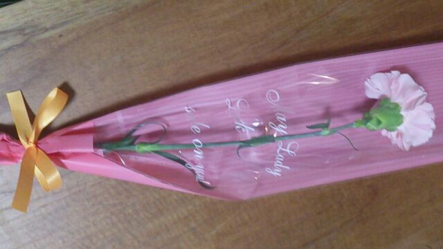 帰りにお小遣いで1輪のカーネーションを買ってくれた♡