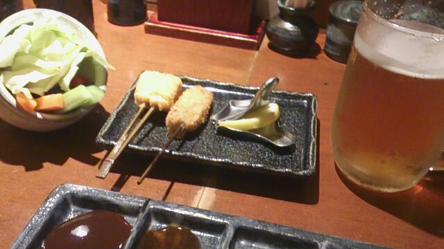 1日目は、会社帰りのパパと待ち合わせをして、近所の串揚げ料理を食べに行った。