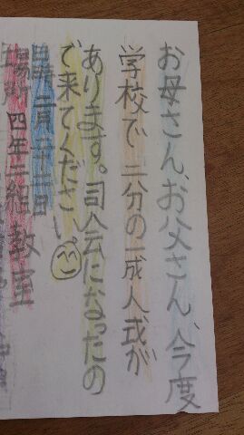 最近は1/2成人式という学校行事がメジャーなようだ。
