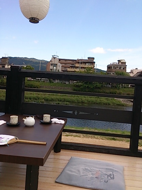 お昼ご飯はちょっと贅沢して、川床でお豆腐懐石のコースをいただきました。