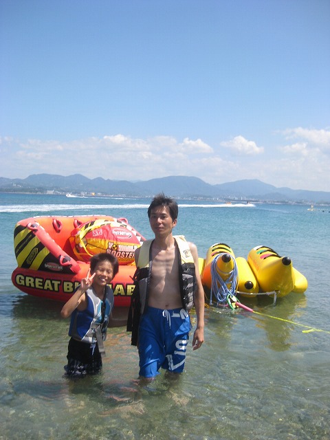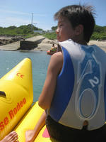 バナナボートと言えば終盤で海に落とされるのがお約束だけど、子どもが一緒だからなのか落とされず終了!