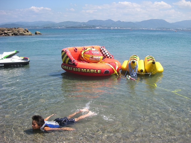 10時から申し込んでいたバナナボートとグレートマーブルっていうマリンスポーツをしに集合場所へ。
