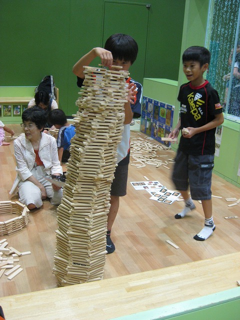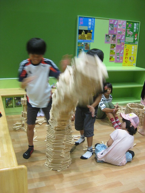 カプラっていう積み木のようなおもちゃコーナーでは2人で自分の背よりも高く積んで、最後はおもいっきり倒して気分爽快!