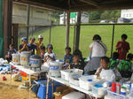 真夏の暑さで子どもたちは休憩に何度も麦茶やアクエリアスを飲みに来る。