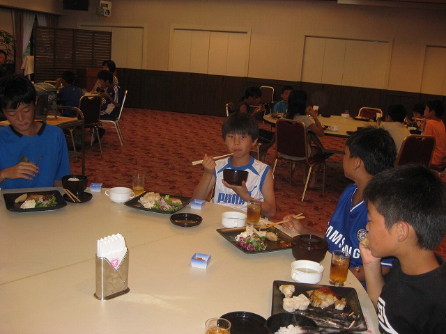 ご厚意でだいちもみんなと一緒にお風呂に入って、晩ご飯を食べて、宴会にも参加させてもらえた。
