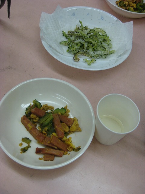 あとゴーヤチップスとゴーヤ茶も係のお母さんが作ってくれていた。