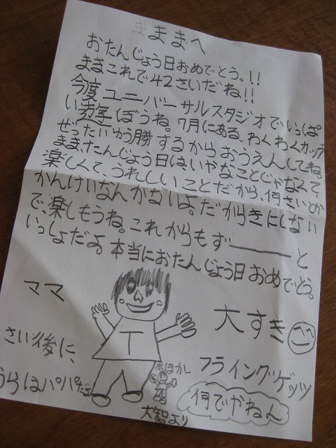 「まだサプライズがあるの。」と言っていただいちだけど、家を出るときにズボンのゴムに手紙を挟んで来てたみたい。
